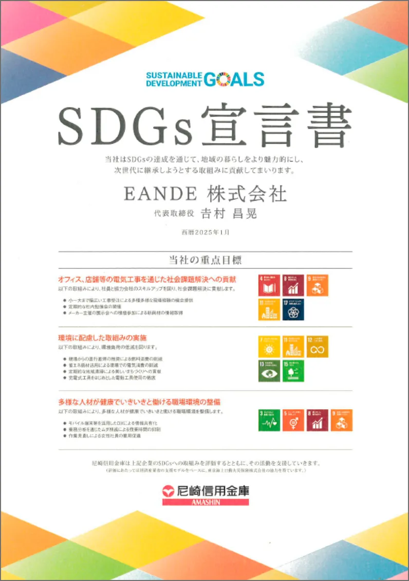 EANDE株式会社は、つなぐのが得意な電気工事・設備工事業の会社です。